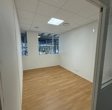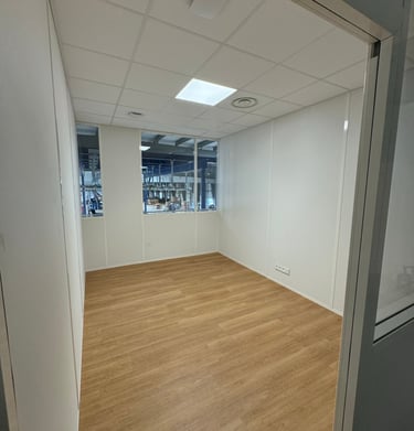 Aménagement intérieur professionnel et particulier avec peinture, sols SPC et cloisons.