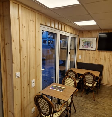 Aménagement intérieur professionnel et particulier avec peinture, sols SPC et cloisons.