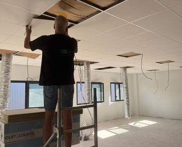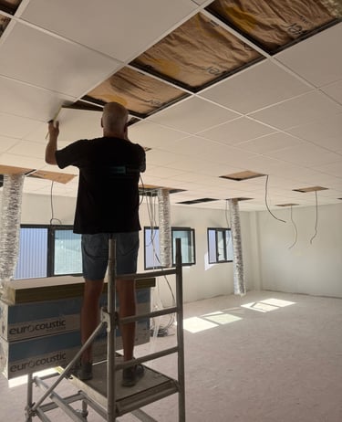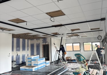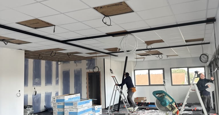 Nous installons des faux plafonds adaptés aux environnements professionnels, alliant esthétique, confort acoustique et praticité.